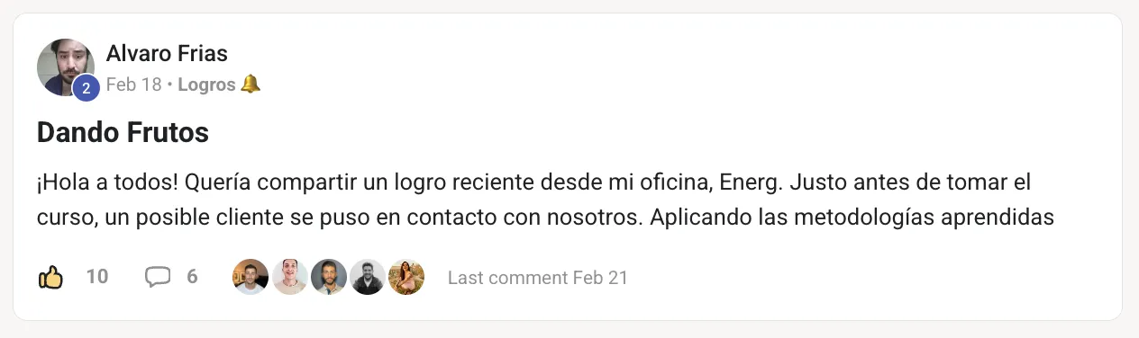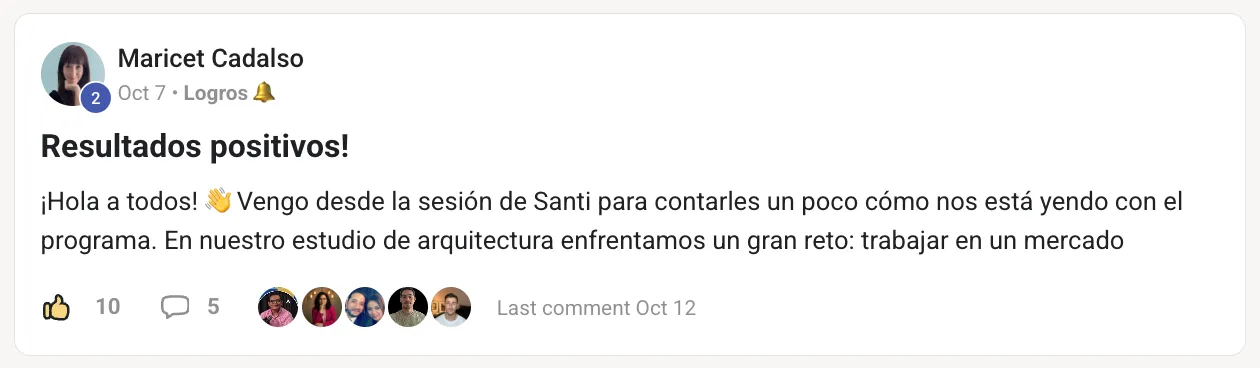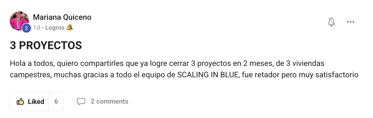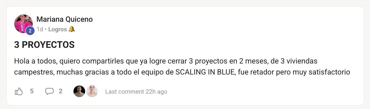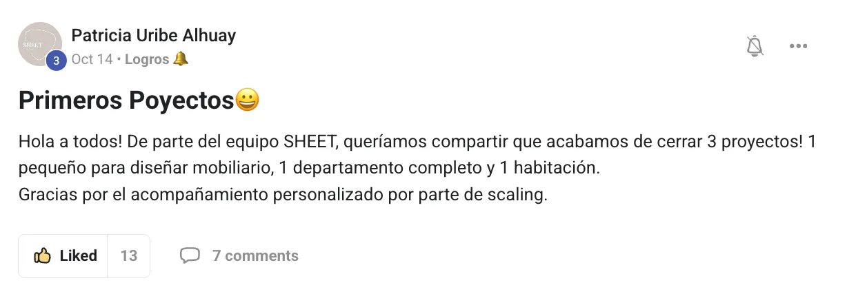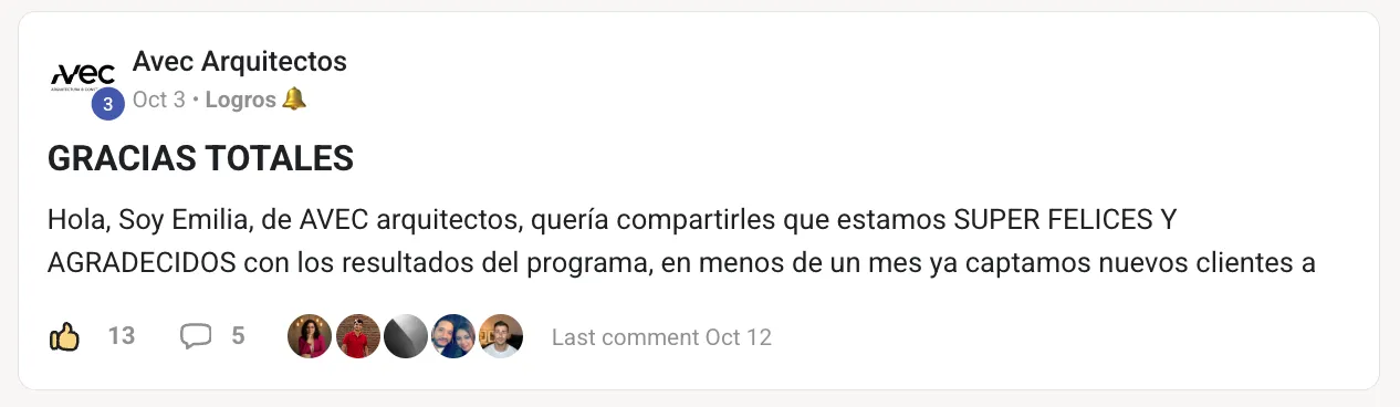 Acceso a una comunidad activa de arquitectos e interioristas que ya están escalando sus negocios usando nuestro método.